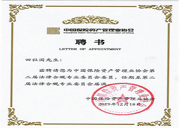 北京市重光律师事务所合伙人田社国律师受聘担任中国保险资产管理业协会第二届法律合规专委会委员