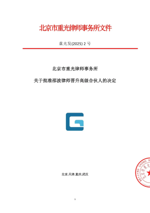 重光新闻|我所合伙人邵波律师晋升为高级合伙人