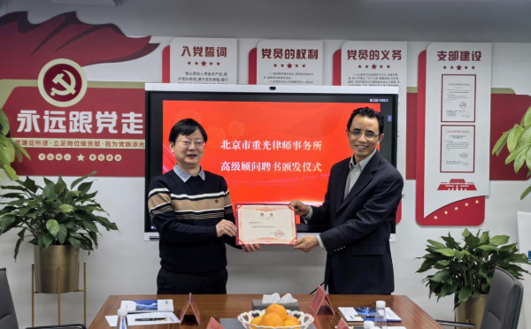 之后,举行高级顾问聘书颁发仪式,本所主任黄海律师向高西白律师颁发高级顾问聘书。