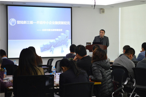 2013年11月1日,本平台发起的重光律师事务所主主办的新三板政策解读及企业与投资机构见面会(第二期)在天津君隆广场成功举办,现场有二十六家企业的董事长、总经理到会,并有上市公司董秘到会关注新三板市场的动态。