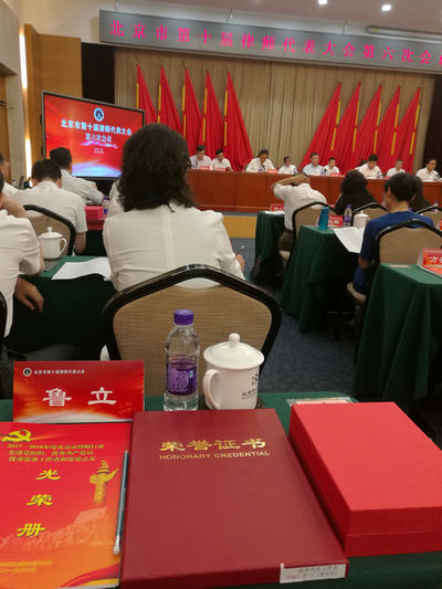 2018年7月8日,北京市第十届律师代表大会第六次会议在北京会议中心召开,本所高级合伙人、党支部书记鲁立律师出席本次会议,本次会议中,北京市律师行业党委对“2017-2018年度全市律师行业先进党组织、优秀共产党员、优秀党务工作者和党建之友”进行了表彰,本所鲁立律师获得2017-2018年度北京市律师行业优秀党务工作者称号,祝阳律师获得2017-2018年度北京市律师行业优秀共产党员称号。