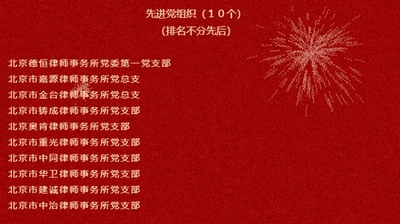 为庆祝中国共产党成立100周年,充分展示律师行业党建工作成果,激励广大律师建功立业,以优异成绩庆贺党的百年华诞,七一前夕,北京市律师行业党委、北京市西城区律师行业党委先后作出2020-2021年度表彰决定,北京市重光律师事务所党支部再次荣获西城区律师行业先进党组织称号,支部书记鲁立律师再次荣获北京市律师行业优秀党务工作者称号。